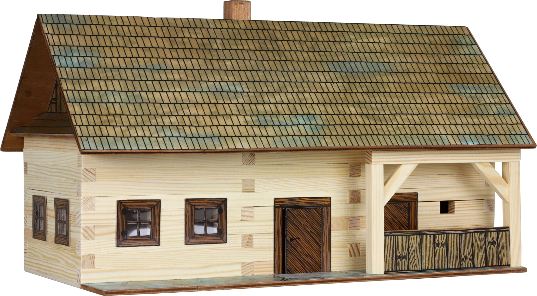 Acest set 3D vă permite să construiți un conac în miniatură. Acesta include lemn de pin tăiat cu o precizie de 9 x 9 mm, acoperiș și baze din placaj, uși, ferestre și un clei PVA. Fiecare bucată de lemn se lipește cu clei PVA conform instrucțiunilor. Jucăriile din lemn papadee nu conțin substante chimice și nici vopsele, așadar sunt non-toxice pentru copii.