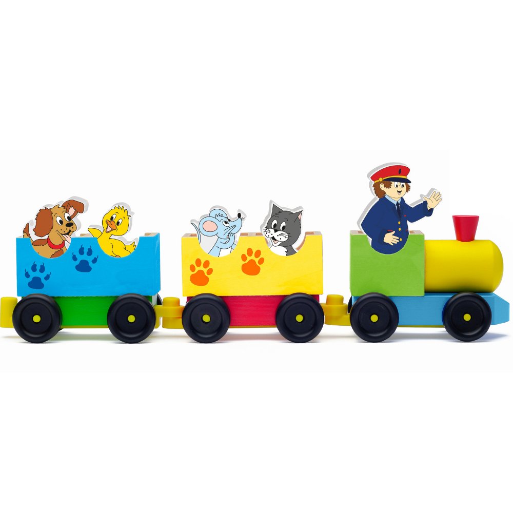Tren din lemn cu figuri animale domestice (8 piese)
