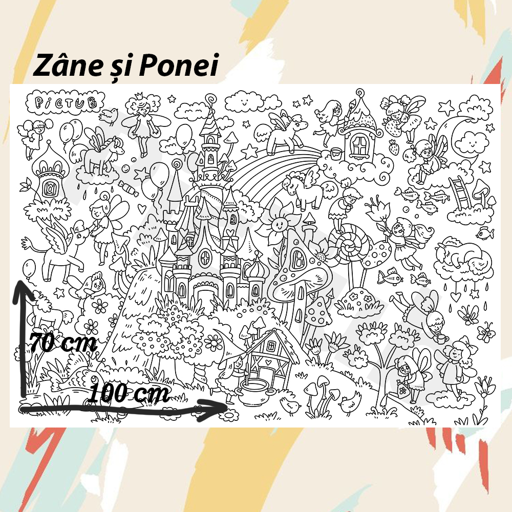 Setul include:✅ un tub, care poate fi folosit pentru păstrarea lucrărilor artistice ale copilului;;✅ un poster 1 metru × 0.7 metri;✅ un set de carioci care sunt sigure pentru copii și se spală ușor de pe aproape orice material textil (Made in Germany);;✅ un set de lipici special, care nu lasă urme pe pereți și se dezlipește ușor.